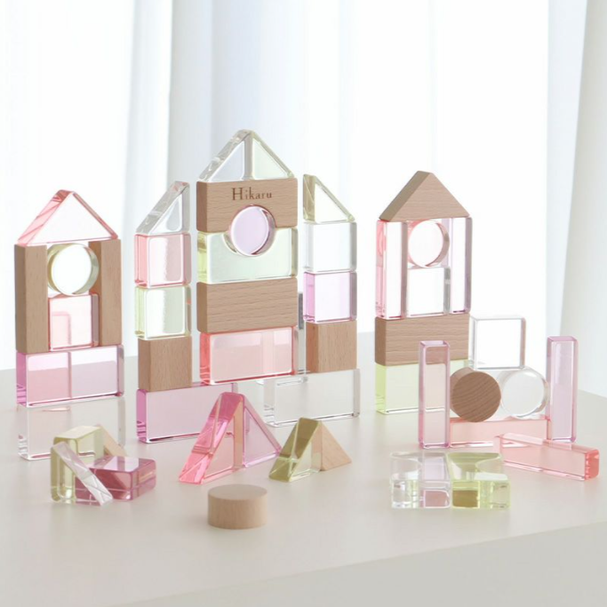キラキラ光るアクリルの積み木は見た目の可愛さはもちろん、