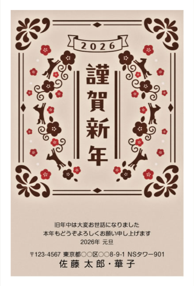 お求めやすい価格で幅広い年代に使いやすい、年賀状らしいデザインです。