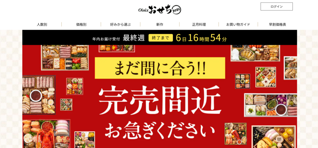 【PR】Oisix おせち おせちのお取り寄せサイトのご紹介です!累計販売台数980,000台以上!毎年人気のおせちの販売が開始しているそうです!〇おすすめポイント〇・冷凍おせち高い冷凍技術で出来立てを冷凍し、素材の味をお届けしてくれる・子供も食べられる「つくった人が子どもに食べさせられる」という理念のもと第三者機関で審査を行い販売されている・全額返金保証万が一、味にご納得いただけなかった場合、全額返金してくれる 詳細はこちらをクリック おすすめ商品 和洋折衷二段重[高砂]2~3人前 19,120円 老若男女から人気!ロングセラー商品☆こんな方におすすめ・人気の定番おせちを楽しみたい・和風の凝った品目を食べたい・洋風品目も一緒に楽しみたい伝統的なおせちらしい品目は、丁寧に仕上げた味付けにこだわりあり。甘味も充実!大人からお子さままで楽しめるおせちとして好評をいただいています。 肉オードブル 鳳雅1~2人前 20,880円 ☆こんな方におすすめ・お肉が大好き!・いろんな肉料理を楽しみたい・和風のおせちに飽きてしまった目玉は3種のローストビーフ!霜降りの柔らかい肉質と豊かな風味で高い評価を誇るプレミアム級の「和王」と称されるくまもと黒毛和牛と、きめ細かい肉質で甘さを引き出した岐阜県産の飛騨牛を使用。 おすすめ情報 商材名 Oisix おせち運営者 K.I※当サイトはアフィリエイトプログラムを利用し宣伝目的で作成しております。